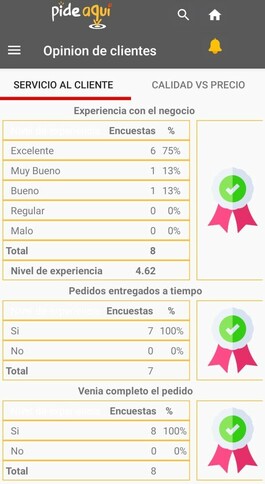 PIDE AQUÍ realiza encuestas a tus clientes para evaluar el servicio recibido y de esta forma puedas conocer lo que ellos opinan de tí para ayudarte a ser mejor.